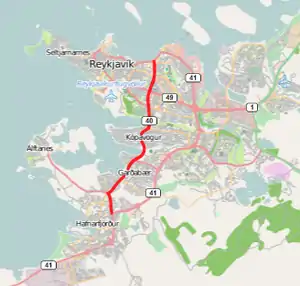Route 40, known as Hafnarfjarðarvegur [ˈhapnarˌfjarðarˌvɛːɣʏr̥] in Icelandic or by its busiest stretch, Kringlumýrarbraut [ˈkʰriŋlʏˌmiːrarˌprœiːt], is one of the two major traffic arteries running across Capital Region.[1][2]