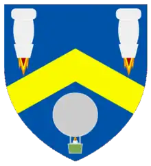 Azure a Chevron Or between in chief two Jet Engines palewise flames downward and in base a Balloon with Car proper