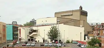 Royal & Derngate is a theatre complex in the Cultural Quarter of Northampton, England, consisting of the Royal Theatre and Derngate Theatre. The Royal was built by theatre architect Charles J. Phipps and opened in 1884. Ninety-nine years later in 1983, Derngate, designed by RHWL, was built to the rear of the Royal. Whilst the two theatres were physically linked, they did not combine organisations until a formal merger in 1999; they are run by the Northampton Theatres Trust. The Royal Theatre, established as a producing house, has a capacity of 450 seats and since 1976 has been designated a Grade II listed building;[1] Derngate Theatre seats a maximum of 1,200 and is a multi-purpose space in which the auditorium can be configured for a variety of events including theatre, opera, live music, dance, fashion and sports. The Errol Flynn Filmhouse, an independent cinema built to the side of the complex, opened in 2013.