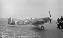 The 161 pilots would fly out to Tangmere two weeks at a time during the "moon period", which was a week before and a week after the full moon.[93] The cover story for the Lysanders given to the RAF squadrons stationed at Tangmere was that the planes were used to do "photographic reconnaissance by night, using special flash flares". The torpedo like extra fuel cylinder slung in-between the wheels of the undercarriage was said to contain special nighttime cameras. Jimmy McCairns, a Lysander pilot with 161, had accepted this story without a thought earlier in his career when he was stationed at Tangmere while flying Spitfires with Douglas Bader's 601 Squadron.[6]