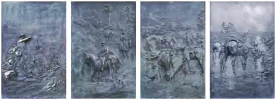 Early on 23 April, A Squadron was stationed at Qatia (or Katia), some 6 miles (10 km) south-east of Romani. At 09:15 it came under attack by a Turkish force of between 1,000 and 1,500 infantry, supported by cavalry and a battery of mountain guns, which had already overwhelmed two squadrons of the Queen's Own Worcestershire Hussars and a party of Royal Engineers further east at Oghratina. The squadron was reinforced by a squadron of Worcesters, and the regiment's own B and D Squadrons moved out of Romani in support. The defenders at Qatia held out until mid-afternoon before being overwhelmed, and B and D Squadrons, which had been heavily engaged in the attempt to reach Qatia, retired back to Romani. The Battle of Katia cost the Royal Gloucestershire Hussars 98 casualties, most of them being taken prisoner, and only nine men of A Squadron evaded death or captivity.[56][57][58] The squadron was criticised for advancing too far, and an Australian soldier who visited Qatia labelled the yeomen "country bumpkins led by privileged toffs".[59] When Lieutenant-General Sir Philip Chetwode unveiled the Royal Gloucestershire Hussars war memorial in 1922, he countered the "very wrong criticism", saying that "there was nothing to be ashamed of, but everything to make them proud of their regiment".[60]