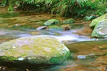 The park is situated in traditional lands of the Dharawal, an Aboriginal Australian people.[8] More precisely, the area known today as Royal National Park is the north-eastern section of the country of the Aboriginal language group. Dharawal country encompasses ocean and estuarine shorelines from Botany Bay to the Shoalhaven River, and forested lands as far west as the Georges River and Appin, and possibly Camden.[9]