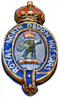 The regiment was renamed as the North Devonshire Regiment of Yeomanry Cavalry and in 1856 as the Royal North Devonshire Regiment of Yeomanry Cavalry. In 1868, the regiment was the Royal North Devon Hussars with Headquarters at Barnstaple. On 1 April 1893, the troops were reorganised in squadrons.[4]