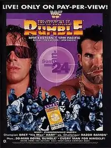 The Royal Rumble is an annual gimmick pay-per-view (PPV), produced every January by the World Wrestling Federation (WWF, now WWE) since 1988. It is one of the promotion's original four pay-per-views, along with WrestleMania, SummerSlam, and Survivor Series, later dubbed the "Big Four".[2] It is named after the Royal Rumble match, a modified battle royal in which the participants enter at timed intervals instead of all beginning in the ring at the same time. The 1993 event was the sixth event in the Royal Rumble chronology and was scheduled to be held on January 24, 1993, at the ARCO Arena in Sacramento, California.[3][4]