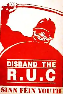 An Ógra Shinn Féin propaganda sticker calling for the RUC to be disbanded