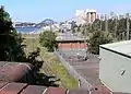 By 1908, goods traffic on the line to Darling Harbour and the neighbouring suburban lines had become excessive, with 592 wagons arriving each day and 512 being dispatched.[3] It was decided to construct the Metropolitan Goods line from Sefton to Darling Harbour via Enfield, Dulwich Hill and Rozelle, with extensions to Botany and the State Abattoirs at Homebush Bay. The initial scheme, approved by the Parliamentary Committee on Public Works, approved the initial line from Dulwich Hill to Darling Harbour. To avoid an opening rail bridge alongside the existing Glebe Island Bridge, a circuitous route was built around Rozelle Bay through Pyrmont. The proposal, which included two tunnels under Pyrmont and Glebe, was approved on 23 November 1914, and the line opened on 23 January 1922.[4] A branch line from the yard served White Bay Power Station.[5] The yard was electrified in September 1967.[6]