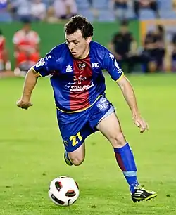 In the 2009–10 season, Suárez repeated the feat (again netting in double digits), as the Valencians returned to La Liga after a two-year absence.[5] On 28 August 2010, at the age of 31 years, six months and nine days, he made his debut in the top division, opening the score at home against Sevilla FC through a penalty kick, in an eventual 1–4 defeat.[6]