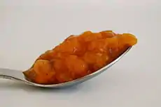 When ripe, cloudberry fruits are golden-yellow, soft and juicy, and are rich in vitamin C.[2] When eaten fresh, cloudberries have a distinctive tart taste. When over-ripe, they have a creamy texture somewhat like yogurt and a sweet flavor. They are often made into jams, juices, tarts, and liqueurs. In Finland, the berries are eaten with heated leipäjuusto (a local cheese; the name translates to "bread-cheese"), as well as cream and sugar. In Sweden, cloudberries (hjortron) and cloudberry jam are used as a topping for ice cream, pancakes, and waffles. In Norway, they are often mixed with whipped cream and sugar to be served as a dessert called multekrem (cloudberry cream), as a jam or as an ingredient in homemade ice cream. Cloudberry yoghurt—molte- or multeyoughurt—is a supermarket item in Norway.[9]