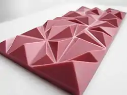 Ruby chocolate is a variety of chocolate introduced in 2017 by Barry Callebaut, a Belgian–Swiss cocoa company.[2] In development since 2004, it was patented in 2015 by inventors Dumarche et al. and assigned to Barry Callebaut under patent number US 9107430, 2015.[3][4] It was unveiled at a private event in Shanghai on 5 September 2017.[5][6] It is marketed as the fourth type of chocolate alongside dark, milk, and white chocolate varieties and has a pink colour.[7][8]