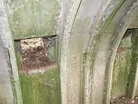 ![]() Extant example at Lawyers' Creek, Holbeach. OS reference TF4002333744. Horizontal embrasures on one side have become partially buried and completely overgrown. Note vertical embrasures.[1] | |