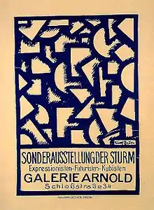 Bauer supported himself as an artist by creating illustrations and caricatures for some of the major magazines and newspapers of the day.[1] In 1912, as Bauer continued to do figurative and commercial work, he began working in an abstract mode. That same year he met Herwarth Walden, who had just founded the magazine Der Sturm and the affiliated gallery. Der Sturm would become the most important artistic center in Berlin at this period. In 1915 Bauer was invited to participate in a group show at Der Sturm. He would continue to actively participate in the Der Sturm gallery scene through the mid-1920s. He had his first solo show there in 1917, with 120 "Lyrical Abstract" works, with solo shows in 1919 and 1920. Among the artists who were in the Der Sturm group were Wassily Kandinsky, Marc Chagall, Paul Klee, and Franz Marc. Like Paul Klee, Bauer became a teacher in the Sturm School.