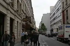 - n° 34: The door is the only remainder of the hôtel Thellusson built in 1778 by Claude-Nicolas Ledoux for the widow of Swiss banker Georges-Tobie de Thellusson.[1] The opening of the hôtel on the rue de Provence was a huge triumphal arch. The hôtel was destroyed in 1826 when the rue Laffitte was lengthened.