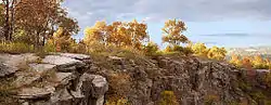 Ruffner Mountain Nature Preserve is a 1,038 acre nature preserve located in the eastern portion of Jefferson County, Alabama in the City of Birmingham's historic South East Lake neighborhood. The preserve includes a visitor center containing native Alabama animals including raptors, snakes, turtles, and owls.[1][2][3] The Ruffner Mountain area was home to iron ore mines and stone quarries, supplying the area's steel mills.