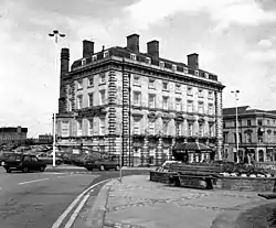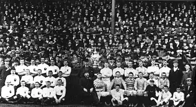 In 1895, a schism in Rugby football resulted in the formation of the Northern Rugby Football Union (NRFU).[15] The success of working class northern teams led to some compensating players who otherwise would be on their job and earning income on Saturdays. This led to the RFU reacting to enforce the amateur principle of the sport, preventing "broken time payments" to players who had taken time off work to play rugby. Northern teams typically had more working class players (coal miners, mill workers etc.) who could not afford to play without this compensation, in contrast to affluent southern teams who had other sources of income to sustain the amateur principle.[3] In 1895, a decree by the RFU banning the playing of rugby at grounds where entrance fees were charged led to twenty-two clubs (including Stockport, who negotiated by telephone) meeting at the George Hotel, Huddersfield on 29 August 1895 and forming the "Northern Rugby Football Union".[16] Within fifteen years of that first meeting in Huddersfield, more than 200 RFU clubs had left to join the rugby league.