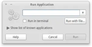 The command functions more or less like a single-line command-line interface. In the GNOME (a UNIX-like derivative) interface, the Run command is used to run applications via terminal commands. It can be accessed by pressing Alt+F2. KDE (a UNIX-like derivative) has similar functionality called KRunner. It is accessible via the same key binds.