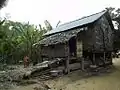If there is a kitchen it is located at the back of the house, generally a few steps lower than the upper floor. Often the kitchen is situated in a separate building near the house, usually behind it. Toilet facilities consist of simple pits in the ground, located away from the house. When filled they are covered with earth. Any livestock (pigs and poultry) is kept in cages, on the ground level. Rice farmers have water buffalo, which are kept in the area around the house.
