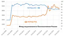 According to the Russian Ministry of Finance, the foreign debt securities the fund can invest in must have credit ratings of AA- or higher by Fitch or Standard & Poor's, or a rating of Aa3 by Moody's.[1] Despite this, the fund agreed to buy (on 17 December 2013) $15 billion of Ukrainian Eurobonds, despite the fact that Ukraine had lower credit ratings at the time.[1][2][3]