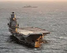 She was originally commissioned in the Soviet Navy, and was intended to be the lead ship of the two-ship Admiral Kuznetsov class. However, her sister ship Varyag was still incomplete when the Soviet Union disbanded in 1991.[8] The second hull was eventually sold by Ukraine to China, completed in Dalian and commissioned as Liaoning.[9]