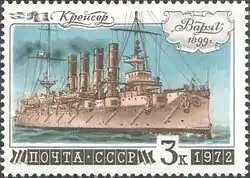 Varyag (also spelled Variag; see Varangian for the meaning of the name) (Russian: кре́йсер «Варя́г») was a Russian protected cruiser. Varyag became famous for her crew's stoicism at the Battle of Chemulpo Bay.