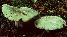 The edible wild mushroom Russula heterophylla, that has lately been given the common name of the greasy green brittlegill[1] is placed in the genus Russula, the members of which are mostly known as brittlegills. It is a variably colored mushroom, found in deciduous forests, and woods in Britain, Europe, and Scandinavia.[2] Appearing with broad-leaved trees in summer to early autumn, it usually has a greenish coloration.