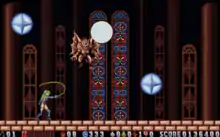 The game consists of ten stages,[3] of which eight are based around finding keys to unlock doors; the seventh stage involves quickly making one's way through the area, and the tenth is a boss-only stage. Stage designs are non-linear, with paths that loop around, and alternative routes with hidden rewards for the player to find. However, in contrast to the game's stage design, a timer is included. The stages include a village, a graveyard, a manor, a cathedral tower, a cavern, a water-filled labyrinth, a courtyard, a clocktower, and Bloodsoon Castle - itself divided into several stages. Every stage ends with a fight against one of the bosses.[1]