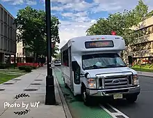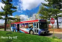 First Transit expanded their bus service to the Newark Campus beginning September 1, 2014; to Camden Campus since September 1, 2019.[11] The new Rutgers-logo fleet of buses utilize the NextBus system and real-time status is available via the official Rutgers app. In 2018, Rutgers replaced the NextBus system with TransLoc.[12]