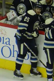 Ryan Russell (born May 2, 1987) is a Canadian former professional ice hockey forward. He played in the National Hockey League (NHL) with the Columbus Blue Jackets. Russell has a twin brother, Kris who is currently playing for the Edmonton Oilers.