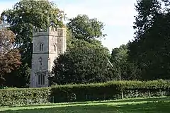 Richard and Sybil Quartermayne, lord and lady of the manor of Rycote, founded Saint Michael's chapel as a chantry in 1449.[1] It is a Perpendicular Gothic building with a chancel, nave and west tower.[1] It retains original 15th-century wooden fittings including pews, stalls and a screen.[2] In the 17th century the chapel was ornamented with a west gallery, altar rails, a reredos and other fittings.[1] The first reredos, dated 1610, is now damaged and in 1974 was kept under the tower.[1] It has been replaced by a second reredos dated 1682.[1] Henry Norris, 1st Baron Norreys is buried here. The chapel is both a Grade I listed building[3] and a scheduled monument.[4]