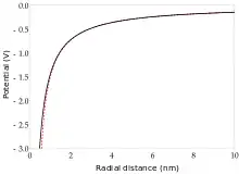 A Rydberg atom is an excited atom with one or more electrons that have a very high principal quantum number, n.[1][2] The higher the value of n, the farther the electron is from the nucleus, on average. Rydberg atoms have a number of peculiar properties including an exaggerated response to electric and magnetic fields,[3] long decay periods and electron wavefunctions that approximate, under some conditions, classical orbits of electrons about the nuclei.[4] The core electrons shield the outer electron from the electric field of the nucleus such that, from a distance, the electric potential looks identical to that experienced by the electron in a hydrogen atom.[5]