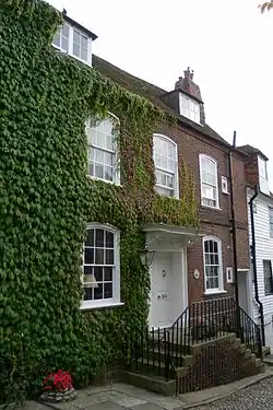 The medieval Cinque Port of Rye, on a sandstone hill in the middle of flat marshland,[1] has (in common with the rest of Sussex) supported a great variety of Christian denominations over the centuries.[2] The earliest post-Reformation community were the Quakers, who founded a chapel on the south side of Mermaid Street in 1700[3] or 1704.[4] They used this meeting house for the next half-century; but in 1753 it was reported as being "in a very dilapidated condition and past hope of repair". They sold the site to a congregation of Strict Baptists who had just formed in the town. They knocked down the decrepit building and erected a new chapel on the site; it was ready in 1754.[2][3][5] An adjacent house was taken over and used as a schoolroom for Baptist children.[4] The religious census of Sussex in 1851 recorded that the chapel had 280 sittings, 150 of which were free; and attendances at morning, afternoon and evening services were given as 80, 60 and 140 respectively. Fifty Sunday school children attended in the morning and afternoon as well.[6]