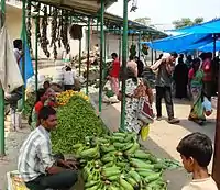 Rythu bazaar, or raithu bazaar, or raitubazar, is a type of farmers' market in Indian states of Andhra Pradesh and Telangana. It is run by the Governments of Andhra Pradesh and Telangana for small scale farmers with small landholdings. The first market started in January 1999 by N. Chandrababu Naidu.[1] This helped small and middle scale farmers to sell their agricultural products directly to customers at some optimum price and helped them to financially sustain a little bit . The customers of towns and cities get these products directly from farmers at less rate . This helped farmers to sell their agricultural products directly to customers of towns and cities without involvement of any mediators , which financially assists them upto certain extent . And the customers get quality agricultural produce at reasonable rates .