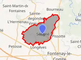 Sérigné (French pronunciation: [seʁiɲe]) is a commune in the Vendée department in the Pays de la Loire region in western France. It is located 48 km away from La Roche-sur-Yon, the capital city of Vendée[3]