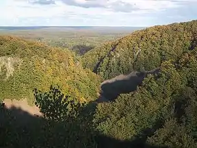 On Söderåsen is the viewpoint Kopparhatten at a height of 200 m (660 ft). It is the highest point in Söderåsens national park. This part of the hill has a particularly dramatic landscape, with up to 90 m (300 ft) deep ravines. Various nivation hollows exists in the vicinity of Kopparhatten.[4]