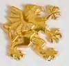 The coat of the arms of the Södermanland Brigade (MekB 10) 1994–2000. It was also used by the Södermanland Regiment (P 10/Fo 43) 1977–1994 and the Södermanland Regiment (P 10) 2000–2004. Blazon: "Or, the provincial badge of Södermanland, a griffin segreant, sable, armed and langued gules. The shield surmounted two arms in fess, embowed and vambraced, the hands holding swords in saltire, or".[4]