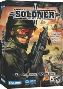 Söldner: Secret Wars is a video game, developed by German studio Wings Simulations and published in 2004 by JoWooD Productions and Encore, Inc. The game can be played in first- or third-person. Players can control an individual soldier who can acquire and control a ground vehicle, ship, submarine, plane, VTOL or helicopter; a ground troop can be equipped with SCUBA gear, weapons with open, telescopic, and dot sights, smoke, fragment, and flash-bang grenades, explosives and booby traps, vehicle repair equipment, thermal scopes, and other gear.
