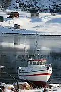 In 2015 rock carvings, estimatedly dated to 4200–5200 B.C. were found at Tømmerneset on Gamneset, several kilometers outside Kirkenes.[42][43] The carvings were discovered along an old path used by reindeers—between two crags—by an archaeologist traveling between existing excavation sites at Gamneset.[42] (A planned oil terminal will expectedly shut out the general public, from the site of the carvings.[44])