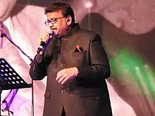 In 1989, Balasubrahmanyam was the playback singer for actor Salman Khan in the blockbuster Maine Pyar Kiya.[55] The soundtrack for the film was very successful and he won a Filmfare Award for Best Male Playback Singer for the song Dil Deewana. For much of the next decade, Balasubrahmanyam continued as the "romantic singing voice" on the soundtracks of Khan's films.[56] Notable among these was Hum Aapke Hain Koun..! which became the highest-grossing Hindi film of all time.[57] Balasubrahmanyam's duet with Lata Mangeshkar, "Didi Tera Devar Deewana", was very popular. This solidified Balasubrahmanyam as one of the biggest playback singers in India.[58] SP Balasubrahmanyam became identified as Salman Khan's voice in the 90s just like Kishore Kumar became Rajesh Khanna's voice through the 70s.[59][60]