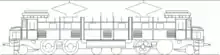 The transformer, oil operated main switch and stepping switch were located in the centre body. The power supply was obtained from the catenary via the two diamond-shaped pantographs mounted on each end body. At the start of a journey, both pantographs had to be lifted since they were only equipped with a single sliding bar without rocker. The cabinets for the reversing pole shunts and the brake resistors were mounted in front of the pantographs, towards the ends of the outer bodies.