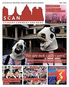 Since 1967 SCAN has claimed many journalistic achievements. It has worked with the police to gather information on crime and delivered breaking news on Parliamentary scandals and national strikes.[6][7][8] Every year the SCAN sports team reports live and in detail on the largest intervarsity sports tournament in Europe, and the number of students reading SCAN’s criticisms of voter turnout in university-wide sabbatical elections is often greater than the turnout itself.[9][10] SCAN has also interviewed MPs, cabinet ministers, NUS presidents, and such diverse names as Owen Jones, Ian Hislop, James May, Simon Bird, Rolf Harris, and the Kaiser Chiefs. A complete archive of SCAN is kept in refrigeration beneath the university library.