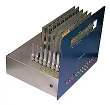 SCELBI was an early model of microcomputer based on the Intel 8008 processor. The company SCELBI (derived from SCIentific-ELectronics-BIology) Computer Consulting in 1973,[1] by Nat Wadsworth. The SCELBI 8H was marketed in 1974 and was delivered either as an assembled unit or as a kit, with five basic circuit boards and provision for memory expansion to 16 kB (16,384 bytes). The company offered input/output devices including a keyboard, teleprinter interface, alphanumeric oscilloscope interface, and a cassette tape interface for data storage. The basic system only used a front panel with 11 switches and LEDs for input and output.