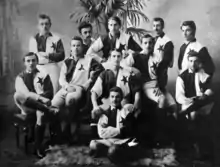 Slavia was founded on 2 November 1892 by medicine students in Vinohrady, Prague, as a sport club aimed at increasing sport activity among students. Initially the club focused on cycling, and expanded to football in 1896.[4] On 25 March of that year, Slavia won their first match against AC Prague 5–0.[4] Four days later, Slavia played against Sparta Prague, with the match finishing 0–0, this match being the start of the rivalry between these two clubs.[5][6] In 1905, Scottish manager and former Celtic player Johnny Madden brought new tactics and views on football from his home country to the club.