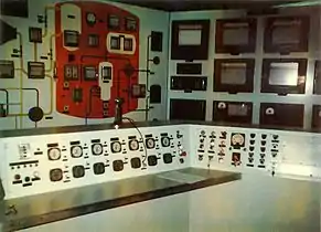 Control room: control rod position indicators in the foreground