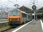 The locomotives were originally delivered in an orange and grey livery.[10] Other liveries carried include the Fret SNCF green livery, the red and grey multiservice and TER Alsace liveries and the purple and silver En voyage livery.[11]