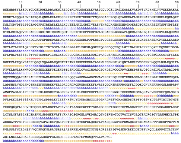 The consensus of the prediction software PELE,[21] GOR4,[22] and SOSUICoil is that the secondary structure of SOGA2 is dominated by alpha helices with interspersed regions of random coil. GOR4 indicated that SOGA2 is dominated by alpha-helices; it predicted a mere 5.61% of residues in an extended strand (parallel or antiparallel Beta-sheet) conformation, as opposed to 47.79% alpha helix and 46.6% random coils.
