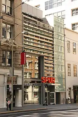 In June 2009, SPUR moved into new headquarters at 654 Mission Street. This location houses the majority of SPUR's staff, as well as a gallery, a research library, and meeting space for SPUR's regular hosted talks.[4]