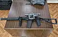 The SR-3M is a modernised variant of the SR-3 Vikhr. It receives an improved polymer furniture, a more convenient charging handle, an AS-style controls (safety lever, semi-automatic/full automatic selector switch is inside the trigger guard), an AS-style side-folding stock, a redesigned handguard with a folding foregrip and where the rear sight is now located, a specially developed quick-detachable suppressor, a Warsaw Pact rail mount, and a new magazine with a 30-round capacity which provides a more reliable feeding during automatic fire whilst still compatible with the 10- and 20-round magazines from the SR-3, AS Val and the VSS Vintorez. It is also worth to mention that the 30-round magazine is also compatible with the AS Val and VSS Vintorez.[4][3] It was ordered in May 2021 by an unnamed foreign country.[5]