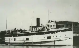Less than a month after her launch, America began a daily run, transporting both passengers and packages on Lake Michigan between Chicago and Michigan City, Indiana.[3][4] The ship remained on this run until 1901; in 1902 she was purchased by the Booth Steamship Company and transferred to service in Lake Superior.[3][4] There, the ship served as a communications link for the western portion of Lake Superior, running three voyages per week among Duluth, Minnesota, Isle Royale, and Thunder Bay, Ontario and numerous small communities in between.[2] The ship carried supplies in and fish catch out, as well as moving both mail and passengers.[2]