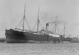 The American was launched at Belfast on 8 August 1895, and delivered to the West India and Pacific Steamship Company on 8 October. She was principally a cargo ship, but also had accommodation for 60 steerage passengers. She was powered by two triple-expansion steam engines which could propel the ship to a maximum service speed of 11 knots (20 km/h; 13 mph).[2]