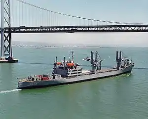 Beaver State was laid down on 13 April 1964, as the break-bulk freighter, SS Mormacdraco, ON 299008, IMO 6507921, a Maritime Administration type (C4-S-60a) hull, under MARAD contract (MA 144). Built by Ingalls Shipbuilding Inc., Pascagoula, MS, hull no. 487, she was launched on 14 January 1965 and delivered to MARAD 28 May 1965, for service with Moore-McCormack Lines. In 1976 the ship was lengthened and converted to a partial container ship by Todd Ship Yard, Galveston, TX. She was sold to United States Lines in 1983 and renamed SS American Draco, 13 September. US Lines ceased operations in 1986 and the ship was turned over to the MARAD on 2 April 1987 and placed in the National Defense Reserve Fleet (NDRF). The ship was selected for conversion to a MARAD type (C6-S-MA60b) crane ship, but conversion was canceled, 12 January 1990. Conversion resumed in 1992, but was not completed by National Steel and Shipbuilding Co., San Diego, CA until 4 May 1997, when she was placed in service as SS Beaver State (T-ACS-10) and assigned to the Ready Reserve Force (RRF), under operation control of the Military Sealift Command (MSC). Beaver State was berthed at Bremerton, WA. and assigned to Maritime Prepositioning Ship Squadron Three and was maintained in a five-day readiness status. She was removed from MSC control and withdrawn from the RRF by reassignment to the NDRF on 28 July 2006. She was converted for the Missile Defense Agency at Cascade General Shipyards, Portland, OR. to an X-Band Transportable Radar Ship, designated (XTR-1) and renamed SS Pacific Tracker, 1 April 2009.[1]