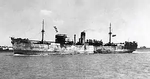 SS Broompark was built by Lithgows Limited in Port Glasgow, Scotland, for J. & J. Denholm Limited. It was launched in October 1939, and operated by the Denholm Line.[1] A cargo ship of 5,136 gross register tons, it was 446 feet (136 m) long overall and 56 feet (17.1 m) abeam, with a depth of 24.8 feet (7.56 m).[2] Her draught was 25 feet 9 inches (7.85 m)[3] She was propelled by a three-cylinder triple expansion engine, with a single drive shaft and screw.[2]